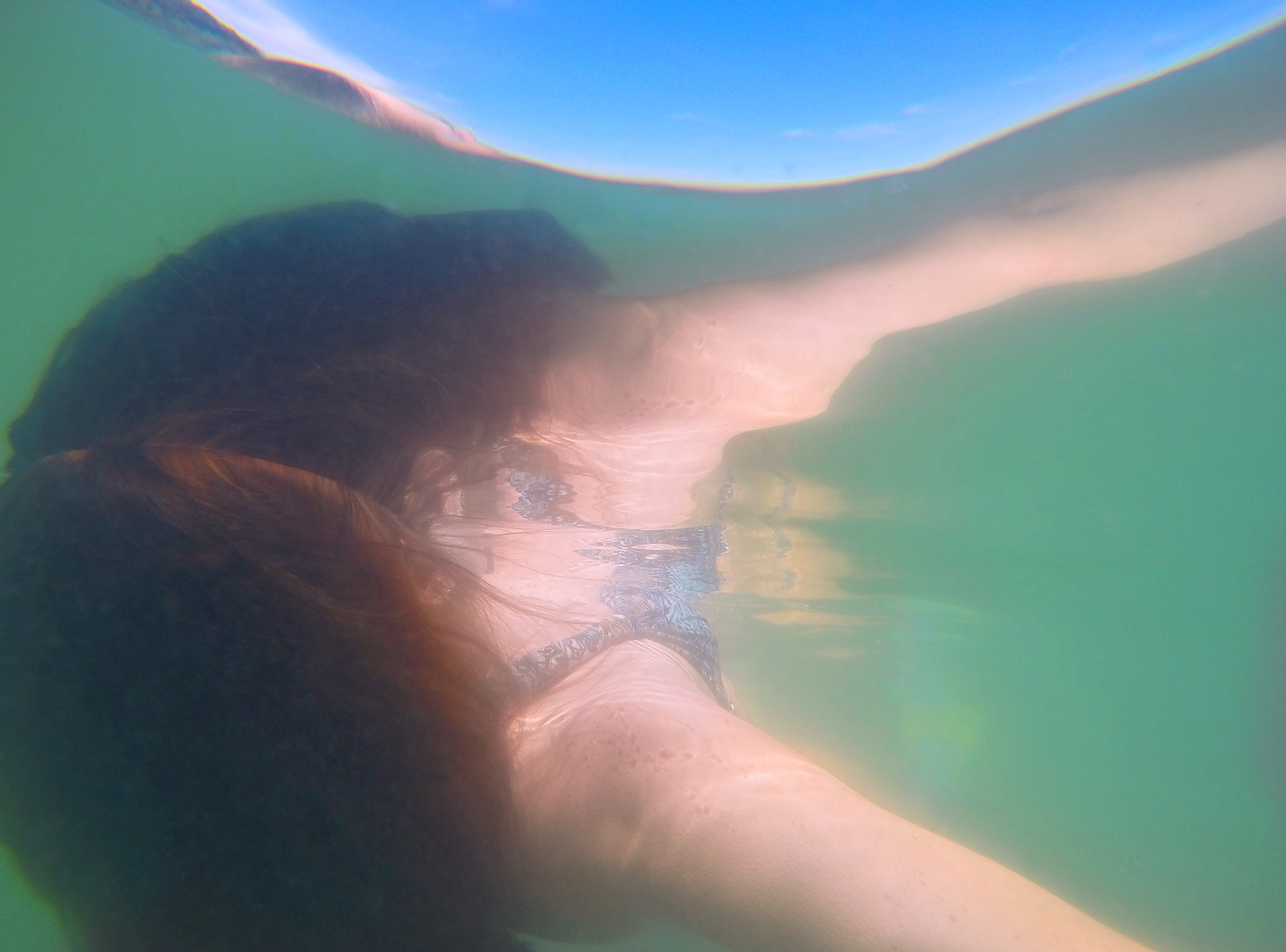 Manifestações artísticas auto projetadas no mar, meu lugar preferido no mundo. No mar consigo expressar a liberação da angústia interna e da dor. Ser rejeitada pelo corporativismo como um indivíduo que não pode surfar por ter uma lesão na coluna, me fez experienciar, a cura pelo oceano. Foram exploradas técnicas subaquáticas com utilização de uma GoPro em busca de construir imagens com luz natural, sensoriais e representassem aspectos similares a minha experiência vivida dentro da água. A osmose é um processo e o mar foi um condutor para atingir o equilíbrio entre corpo e mente.